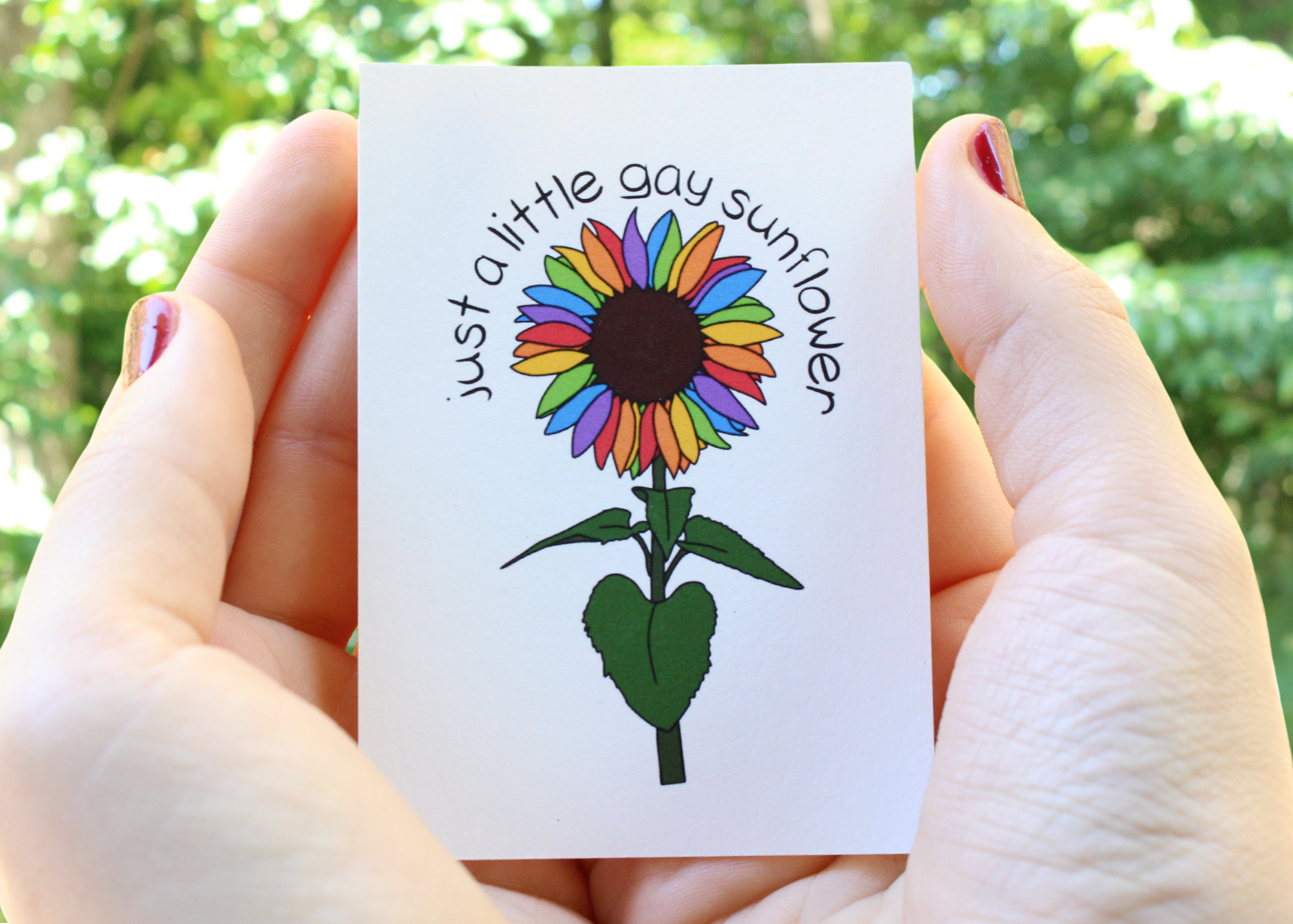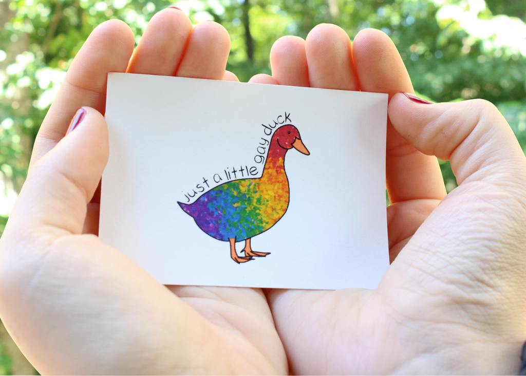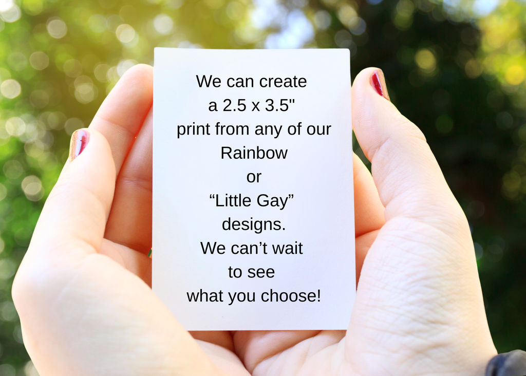 They are tiny (2.5" x 3.5") but they are mighty! These ACEO (art cards, editions and originals) gay and rainbow art prints are the perfect tiny thing to show off your pride and let everyone know you are a safe space. Each print is an original design,  printed on quality art paper and packaged with care.