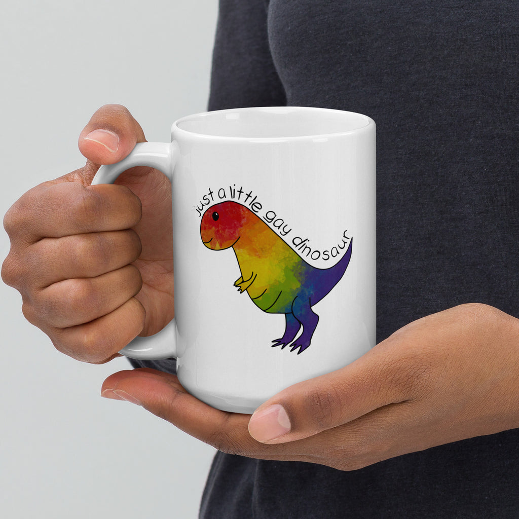 just a little gay dinosaur mug, fun gay pride gift, lgbtqia+ pride, 11 oz, 15 oz, 20 oz, microwave and dishwasher safe